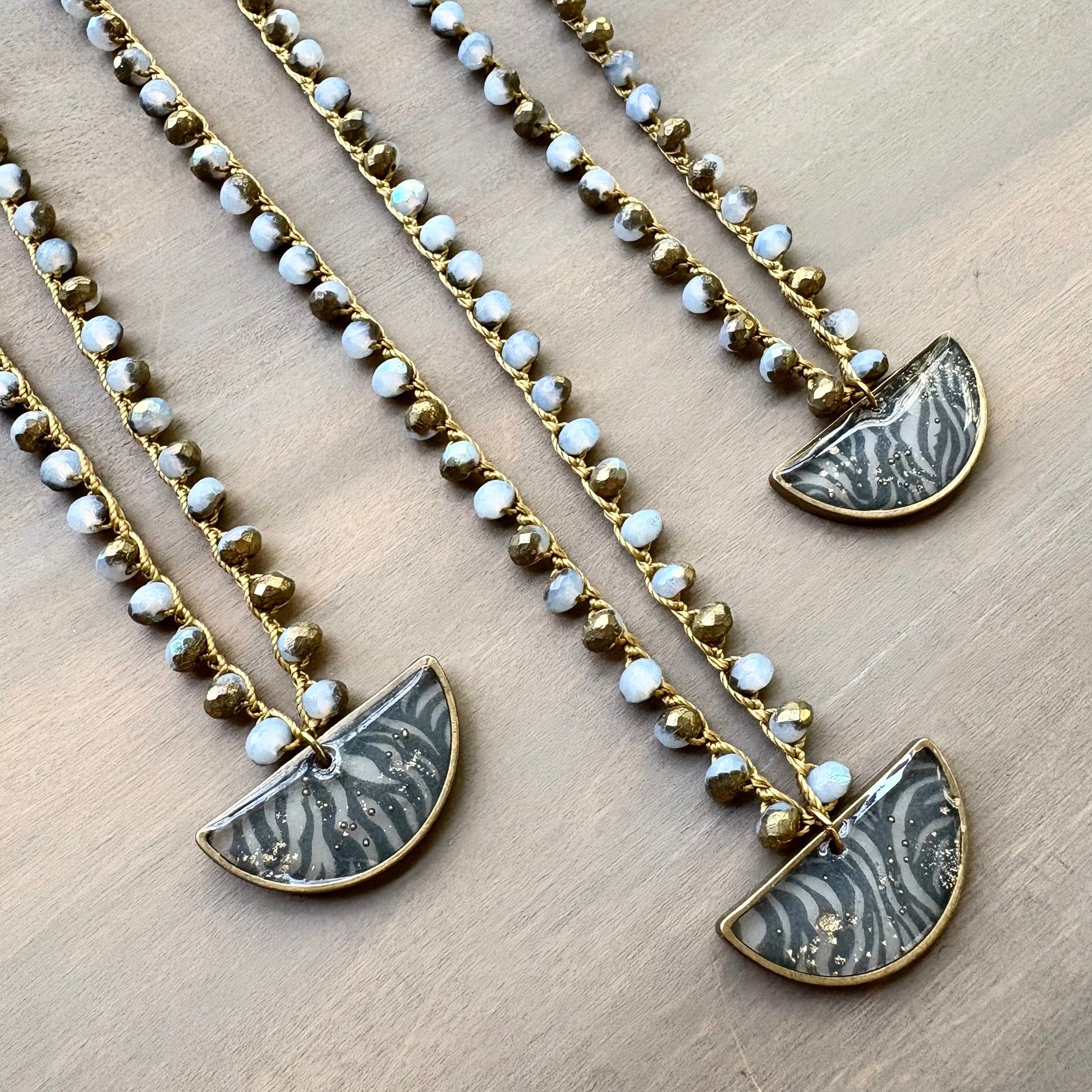 Inspired by the beautiful Northport Harbor in New York. Northport is the loveliest little town, filled with sail boots and motor boats and a quaint downtown that houses one of my favorite shops! I designed this piece Using liberty of London fabric with a crocheted strand of check Kristal. Measures about 17.5 inches long with button and loop toggle closure. Listing is for one necklace.