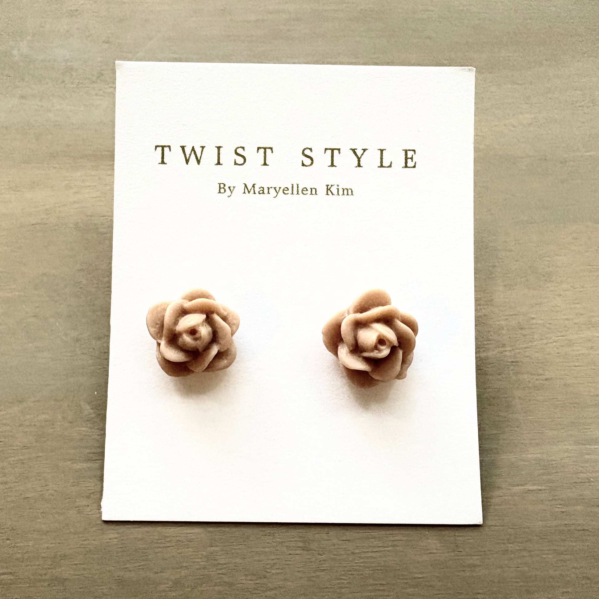 I think these look like little dollops of cake frosting - but they are not! ;) The perfect warm, rosy taupe color, these stud earrings also come with backs.